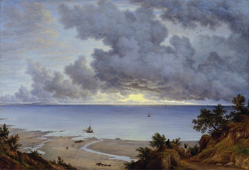 La pintura transmite una sensación de quietud y serenidad, interrumpida únicamente por el dinamismo del cielo y el movimiento implícito del barco a vela. Se intuye una conexión profunda entre el hombre y su entorno, invitando al espectador a reflexionar sobre la belleza efímera de la naturaleza y la fragilidad de la existencia. La composición, con su perspectiva elevada y su amplio horizonte, genera una sensación de amplitud y libertad, pero también de vulnerabilidad ante las fuerzas naturales.