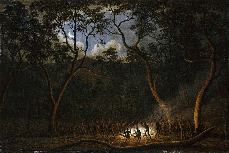 La vegetación es abundante y detallada: árboles frondosos dominan la composición, creando un marco natural que acentúa la sensación de aislamiento y tranquilidad. El uso de la luz es sutil; no hay contrastes dramáticos, sino una iluminación suave y uniforme que contribuye a la atmósfera serena del conjunto.