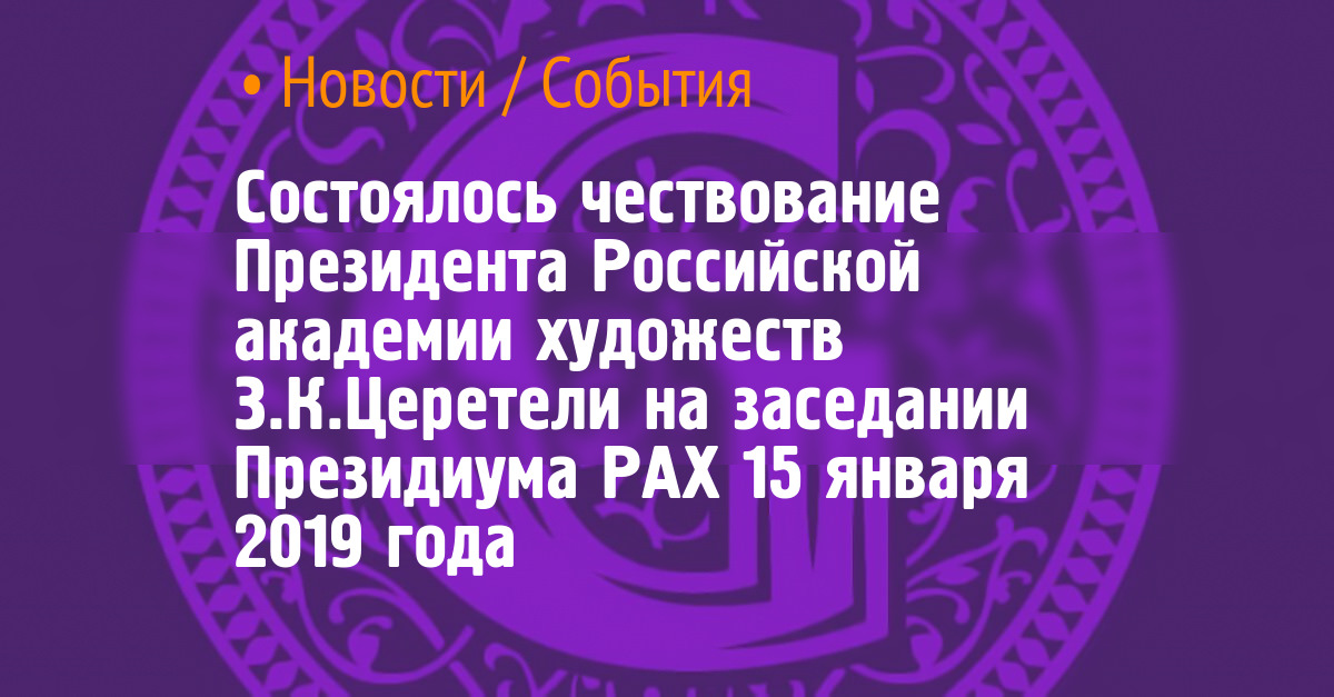 El presidente de la Academia de Artes de Rusia, ZK Tsereteli, fue honrado en una reunión del Presidium de la Academia de Artes de Rusia el 15 de enero de 2019.